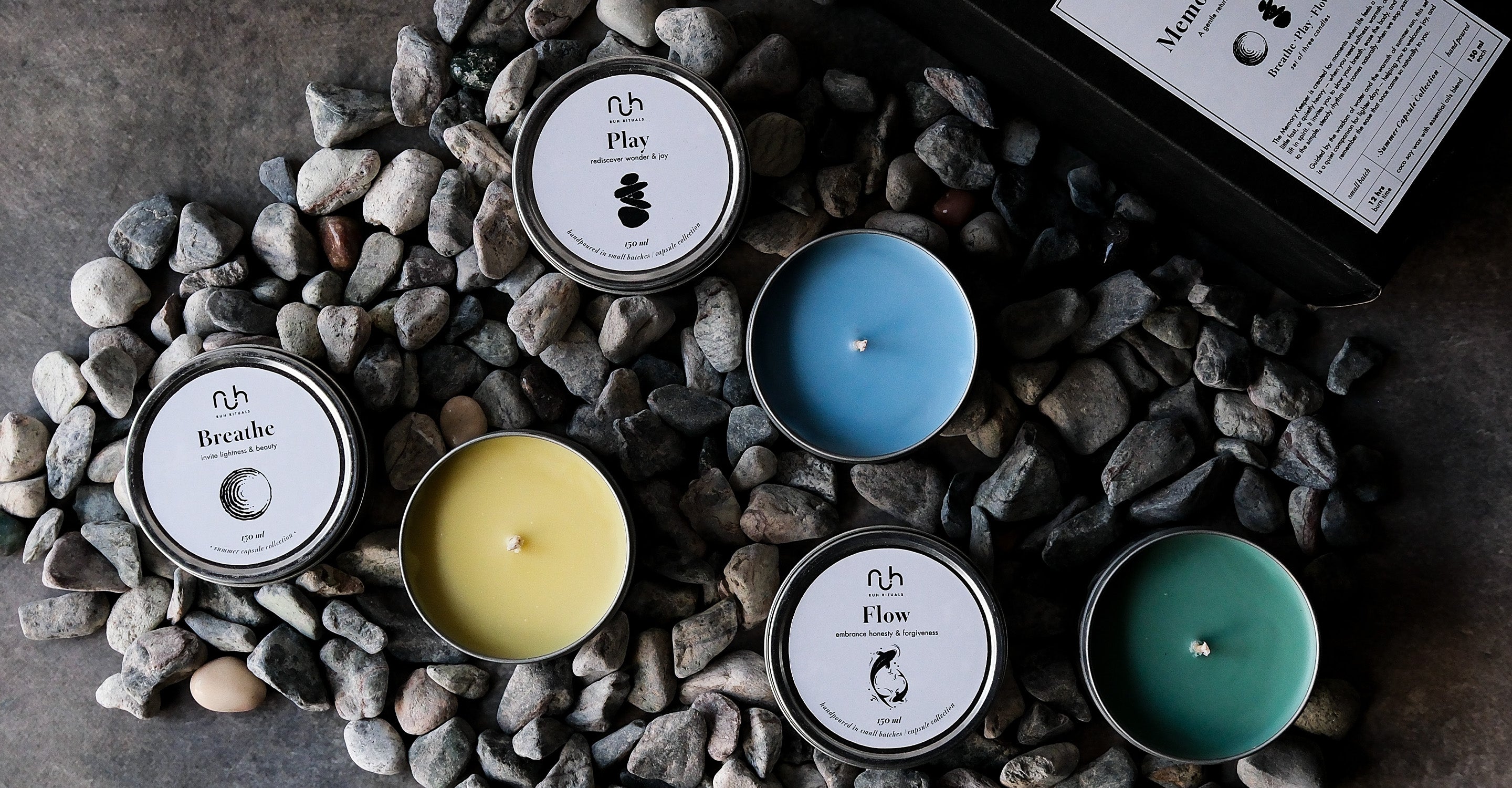 Hand-poured in small batches with meticulous care, each Ruh Rituals candle is thoughtfully crafted using a 100% natural coconut–soy wax blend and pure essential oils. We use only phthalate-free ingredients, eco-cotton wicks, and reusable glass jars, while our botanicals are consciously sourced from India and across Asia to help keep our carbon footprint low. Every detail is chosen with intention — so the product you receive is as gentle on the planet as it is meaningful for your ritual.
