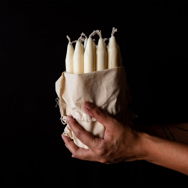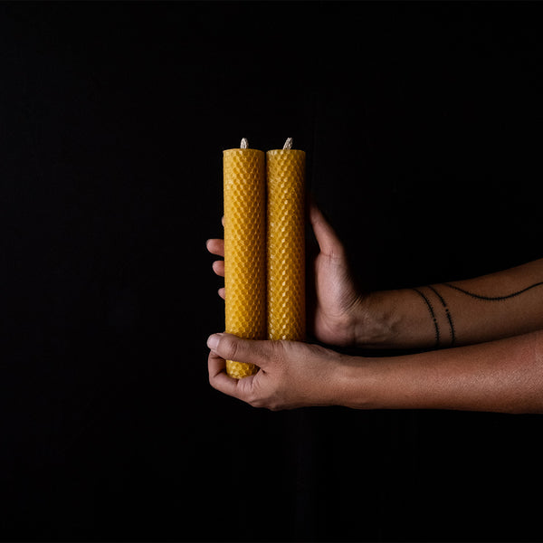 Our collection of pillar, taper, mould, and altar candles is designed to accompany many kinds of moments: ritual work and meditation, long evenings with friends, soft conversations, or the simple act of bringing stillness into your space. Crafted slowly and by hand in very small batches, these candles are made from 100% natural beeswax and lightly scented with pure essential oils. Each piece is poured with care and intention - a quiet offering of warmth, light, and presence. Beeswax burns with a warm, golden glow and carries the subtle scent of honeyed air, creating an atmosphere that feels both grounding and quietly magical. Light them as you would begin a small ceremony - a way to mark time, hold intention, and invite a little more beauty into the everyday.